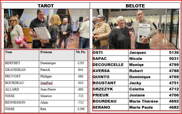La journée s’est déroulée avec un concours de Belote et de Tarot,